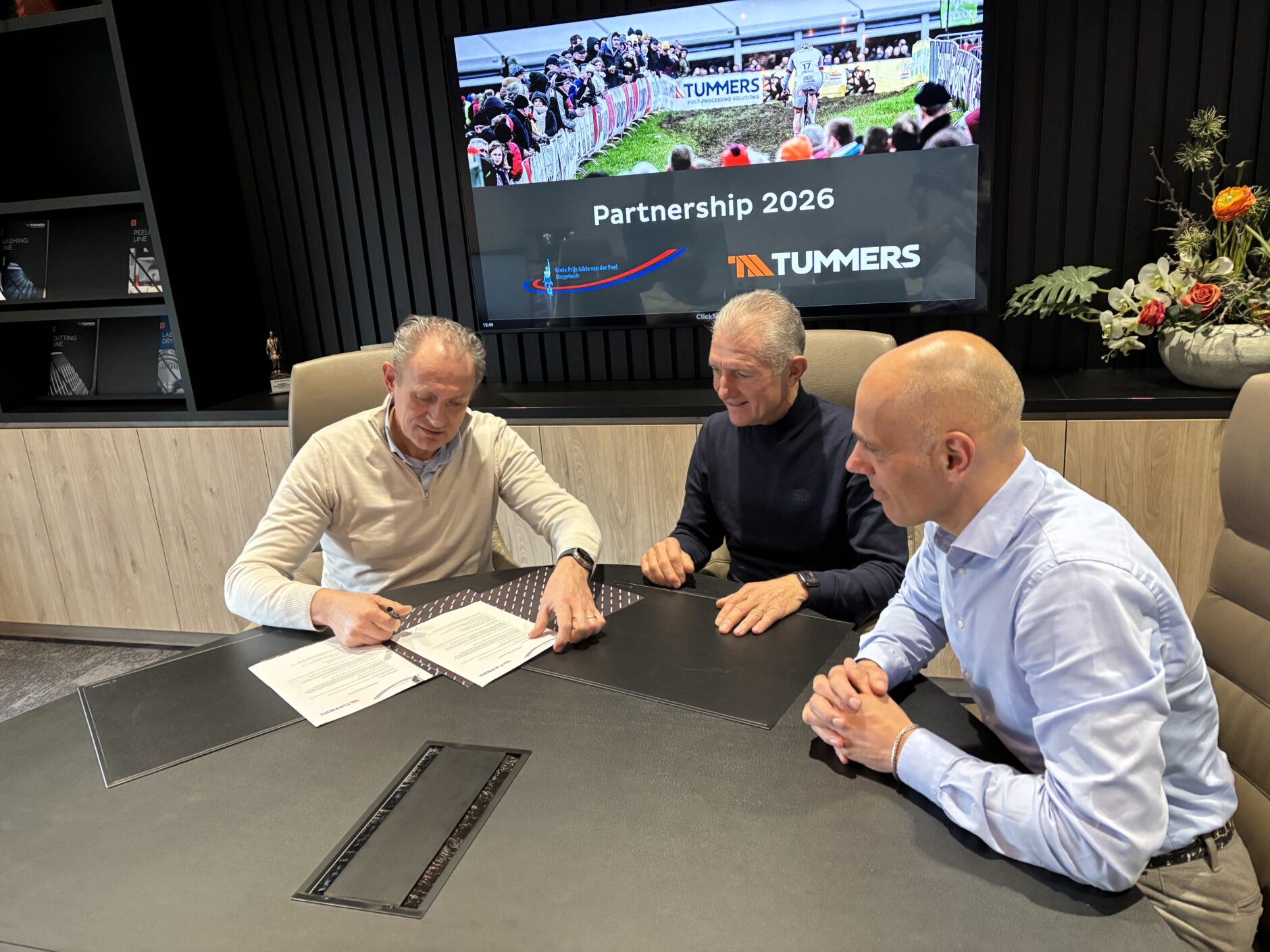 During an official moment at Tummers Group’s headquarters, CEO Lennaert van Dijk and COO Ricardo Moerkens formally confirmed the extension of the partnership on behalf of Tummers Group. Jan Prop, Chairman of the GP Adrie van der Poel Foundation, was also present.